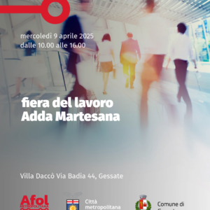 Mercoledì 9 aprile 2025, dalle 10:00 alle 16:00, Villa Daccò a Gessate ospiterà la Fiera del Lavoro Adda Martesana, un evento organizzato da AFOL Metropolitana in collaborazione con il Comune di Gessate, pensato per favorire l’incontro diretto tra aziende e candidati.