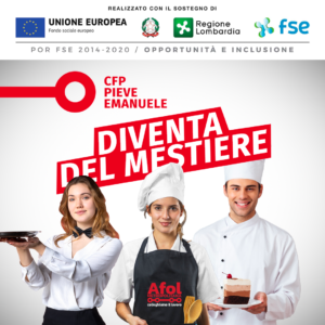 Scegli di diventare cuoco, cameriere o pasticciere. Grazie ai corsi triennali gratuiti, che AFOL Metropolitana realizza nella sede del centro di formazione professionale di Pieve Emanuele, in via dei Gigli 7, si può.