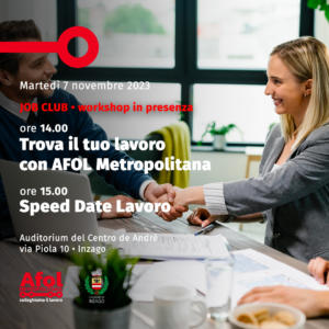 Proseguono gli appuntamenti con il lavoro sul territorio organizzati da AFOL Metropolitana in collaborazione con le amministrazioni comunali. Il calendario del mese di novembre si apre a Inzago, l’appuntamento è martedì 7 novembre presso l’Auditorium De André in via Piola 10.