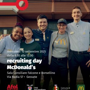 Lavorare nella ristorazione. È possibile farlo grazie al Recruiting day di McDonald’s che si tiene mercoledì 10 settembre a Gessate, organizzato da AFOL Metropolitana in collaborazione con il Comune di Gessate. McDonald’s è alla ricerca di addetti/e alla ristorazione da impiegare nel nuovo ristorante di Gessate.