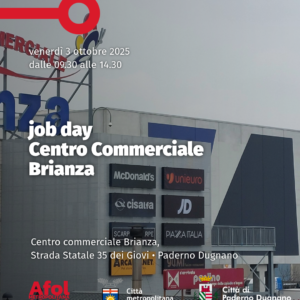 È la prima edizione del Job Day al Centro Commerciale Brianza, una giornata dedicata all’incontro tra aziende e candidati, promossa da AFOL Metropolitana in collaborazione con il Centro Commerciale Brianza e il Comune di Paderno Dugnano.