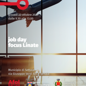 Una nuova tappa per il lavoro sul territorio con il recruiting day di giovedì 23 ottobre. Organizzato con il Comune di Settala, è dedicato al mondo aeroportuale, con focus sulle oltre 50 opportunità di lavoro presso l’aeroporto di Milano Linate.