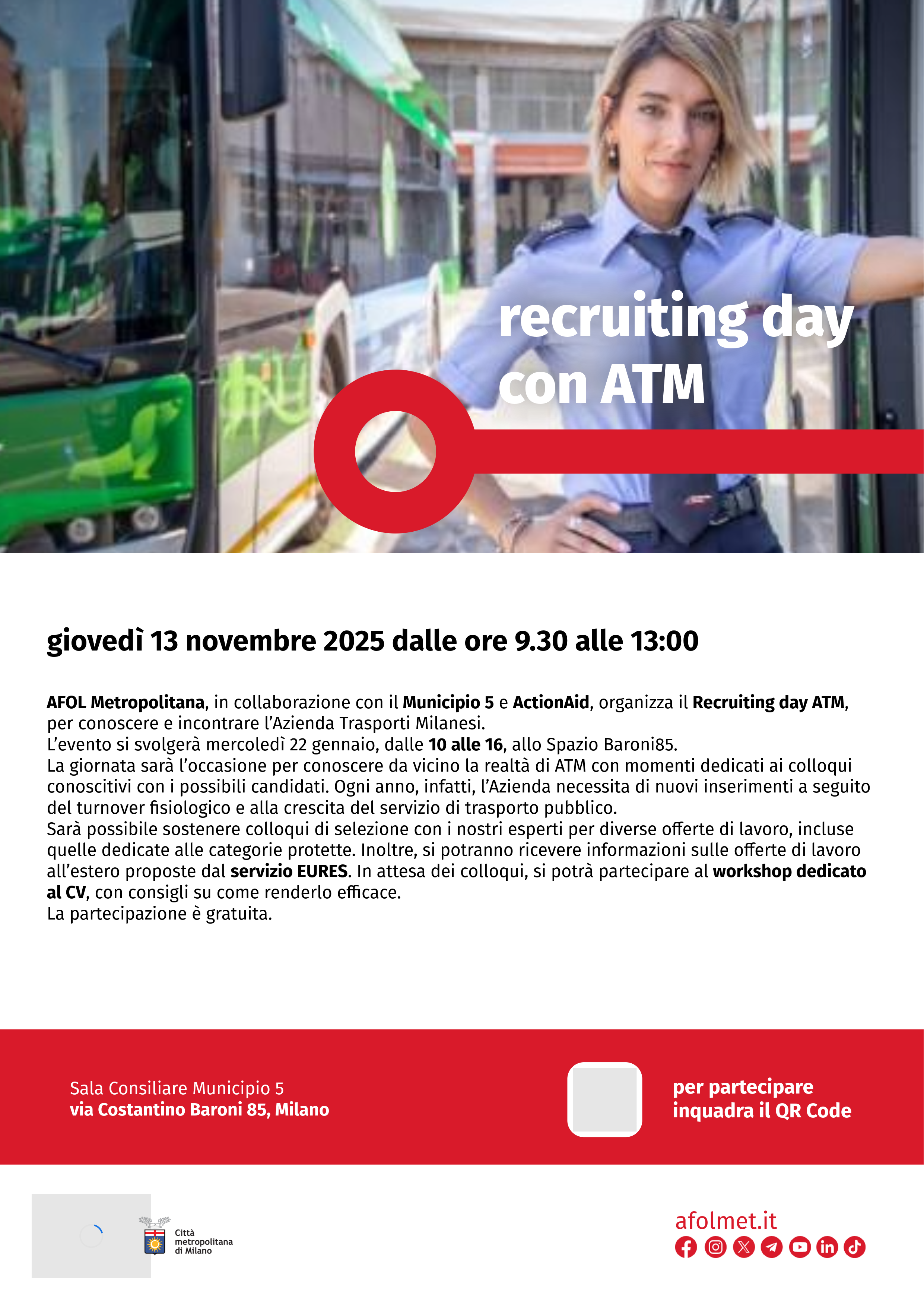 Afolmet in collaborazione con il Municipio 5 organizza un recruiting day, dedicato all’attuale campagna di selezione delle aziende del gruppo ATM, leader nel settore dei trasporti.