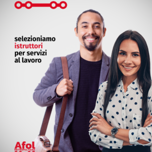 AFOL Metropolitana rende noto che è indetta una selezione per la formazione di una graduatoria da cui attingere per assunzioni a tempo pieno e indeterminato, con inquadramento nell’Area degli Istruttori del vigente CCNL Funzioni Locali (ex categoria economica C1), finalizzate all’inserimento in Afol Metropolitana di Istruttori Servizi al Lavoro.