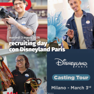 Disneyland Paris torna a Milano, il giorno 3 marzo, con il Casting Tour 2026, l’evento di recruiting più divertente d’Europa.