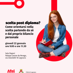 Organizzati da AFOL Metropolitana in collaborazione con il Comune di Legnano, gli incontri saranno un’occasione per riflettere insieme sulle scelte dopo il diploma, in un percorso di orientamento che mette al centro le attitudini, gli interessi e il talento dei ragazzi.