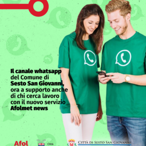 Il nuovo servizio, denominato Afolmet News, e inaugurato a dicembre con il comune di Garbagnate Milanese, parte oggi, mercoledì 21 gennaio 2026 e offrirà ogni settimana informazioni su offerte di lavoro, iniziative di orientamento, servizi per le persone in cerca di occupazione e percorsi formativi, sia online sia sul territorio, affiancando la funzione di comunicazioni istituzionale già svolta dal canale WhatsApp comunale. Questa iniziativa nasce dalla volontà condivisa del Comune di Sesto San Giovanni e di Afol Metropolitana di garantire ai cittadini un accesso semplice e accessibile ai servizi dedicati all’occupazione e alla crescita professionale.