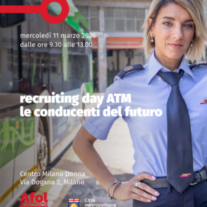 Un incontro dedicato in particolare alle donne interessate a costruire un percorso professionale nel trasporto pubblico locale. È questo l’obiettivo del recruiting day promosso da Atm, Azienda Trasporti Milanesi, organizzato da Afol Metropolitana in collaborazione con il Municipio 1, in programma mercoledì 11 marzo dalle ore 9.30 alle 13.00 presso il Centro Milano Donna di via Dogana 2.