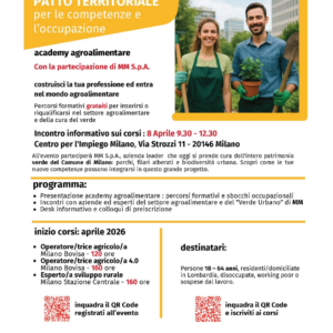 Il Patto territoriale Agroalimentare è finanziato da Regione Lombardia attraverso il Programma FSE+ 2021–2027 e coinvolge Città Metropolitana di Milano, associazioni del settore, distretti del cibo, enti di formazione e servizi al lavoro.
