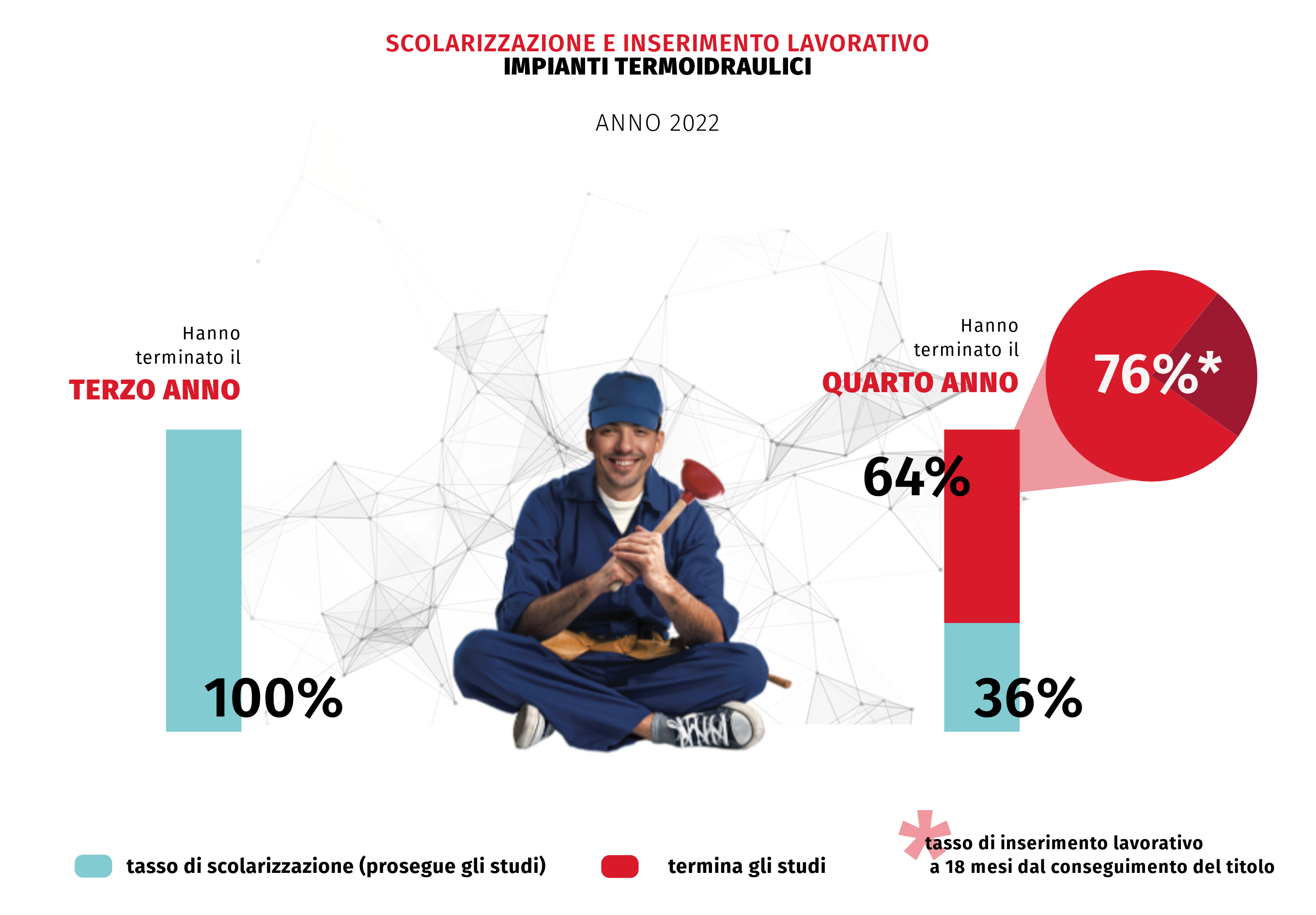 Il corso triennale di formazione professionale è rivolto agli studenti in uscita dalla terza media e offre una preparazione pratica e teorica per lavorare come installatore termoidraulico. Gli studenti acquisiranno competenze nella realizzazione di impianti idraulici, termici e di climatizzazione, oltre alla gestione e manutenzione delle relative tecnologie. Al termine del corso, si ottiene una qualifica professionale riconosciuta a livello nazionale ed europeo, utile per entrare nel mondo del lavoro o proseguire con una specializzazione tecnica.