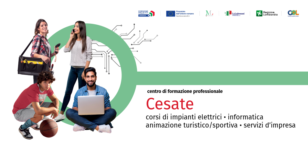 AFOL Metropolitana, presso il Centro di Formazione Professionale di Cesate, propone percorsi di formazione professionale nei settori dell’animazione turistico-sportiva, dell’impiantistica elettrica, dell’informatica e dei servizi d’impresa per ragazze e ragazzi dai 14 ai 18 anni in obbligo formativo.