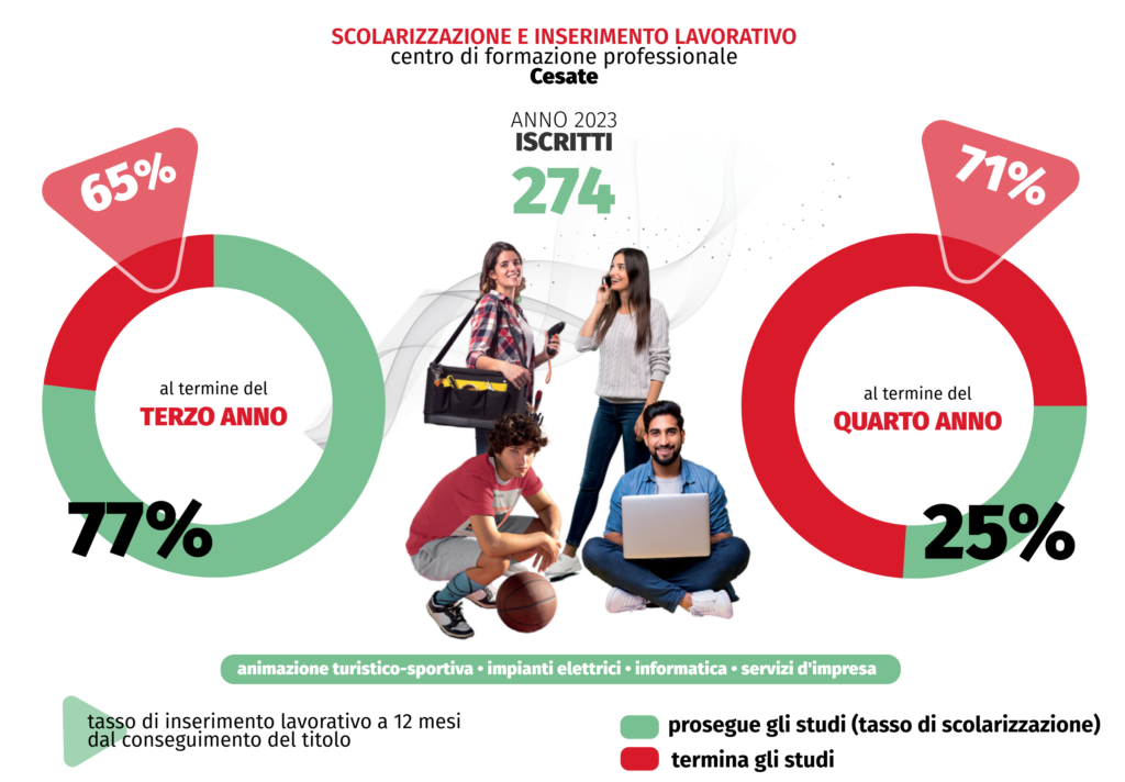 Inoltre, è attivo nella sede, tutto l’anno, uno Sportello di orientamento pensato non solo per offrire supporto continuo, ma anche per prevenire la dispersione scolastica, garantendo un accompagnamento costante e personalizzato lungo il percorso di studio. Nell’anno formativo 2023-24 lo Sportello del cfp di Cesate ha offerto sostegno a 98 studentesse/i.