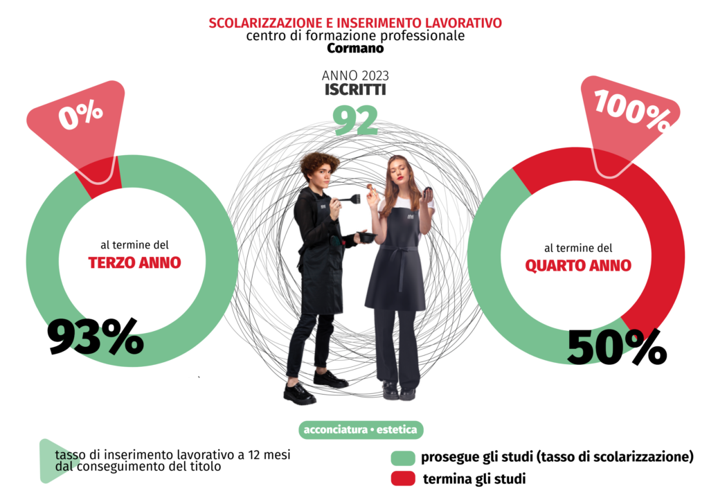Inoltre, è attivo nella sede, tutto l’anno, uno Sportello di orientamento pensato non solo per offrire supporto continuo, ma anche per prevenire la dispersione scolastica, garantendo un accompagnamento costante e personalizzato lungo il percorso di studio. Nell’anno formativo 2023-24 lo Sportello del cfp Cormano ha offerto sostegno a 54 studentesse/i.
