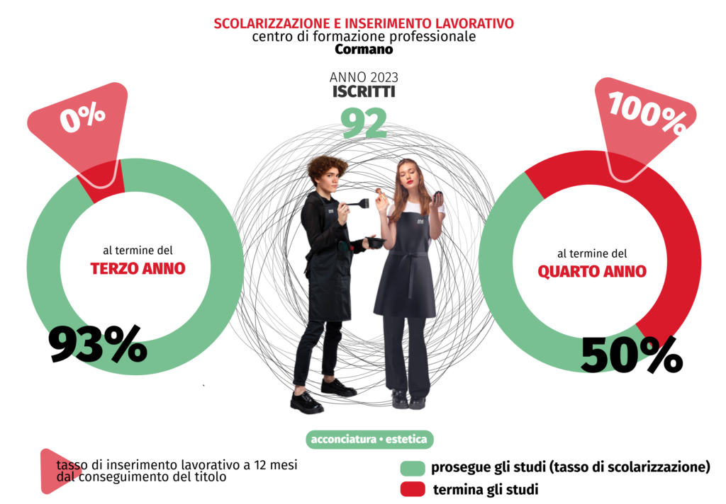 Inoltre, è attivo nella sede, tutto l’anno, uno Sportello di orientamento pensato non solo per offrire supporto continuo, ma anche per prevenire la dispersione scolastica, garantendo un accompagnamento costante e personalizzato lungo il percorso di studio. Nell’anno formativo 2024-25 lo Sportello del cfp Cormano ha offerto sostegno a 116 studentesse/i.