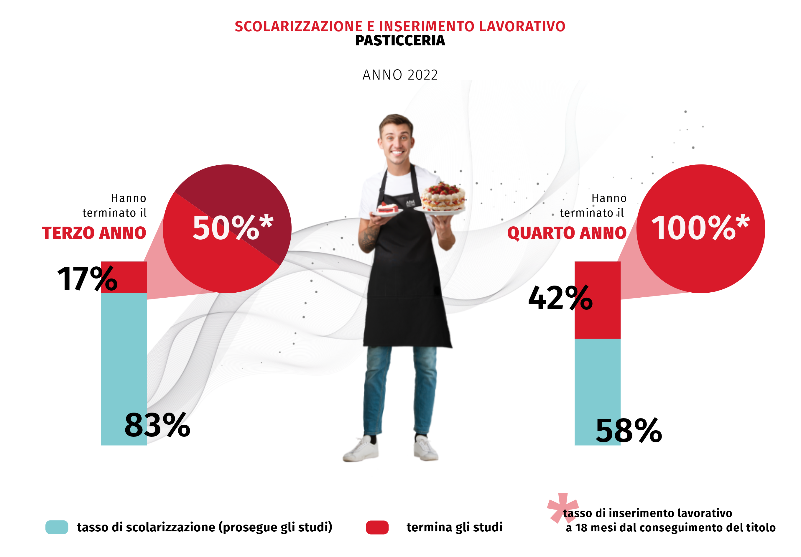 Il quarto anno rappresenta una fase di approfondimento, in cui gli studenti possono specializzarsi in pasticceria, pasta e prodotti da forno con moduli avanzati su organizzazione, gestione autonoma e innovazione. Questo percorso prepara i partecipanti a ruoli di responsabilità all’interno delle realtà del settore.