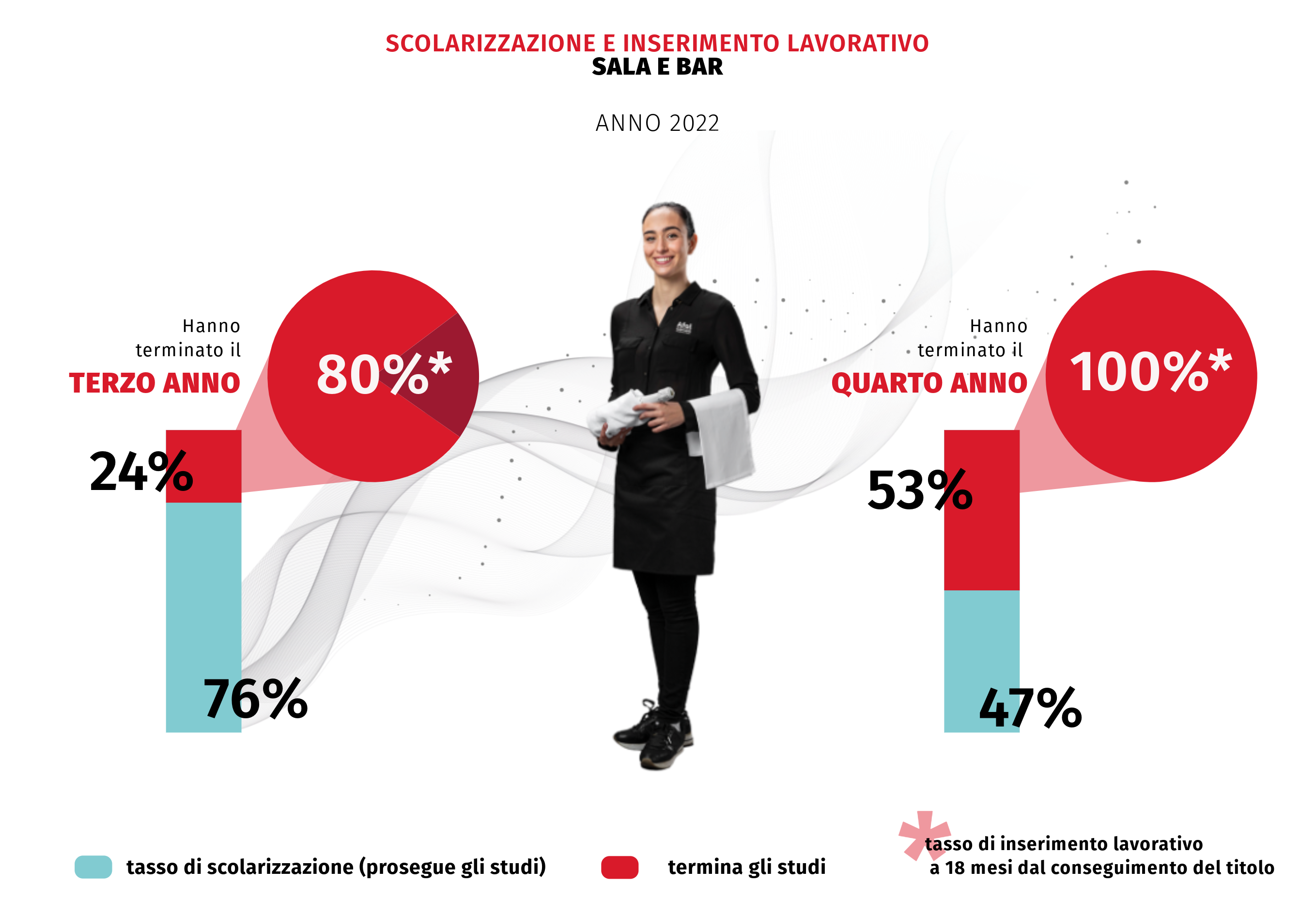 Il corso quadriennale di formazione professionale per allestimento sala e somministrazione di piatti e bevande è rivolto agli studenti in uscita dalla terza media e fornisce le competenze necessarie per eseguire le principali operazioni di sala e di servizio bar.
