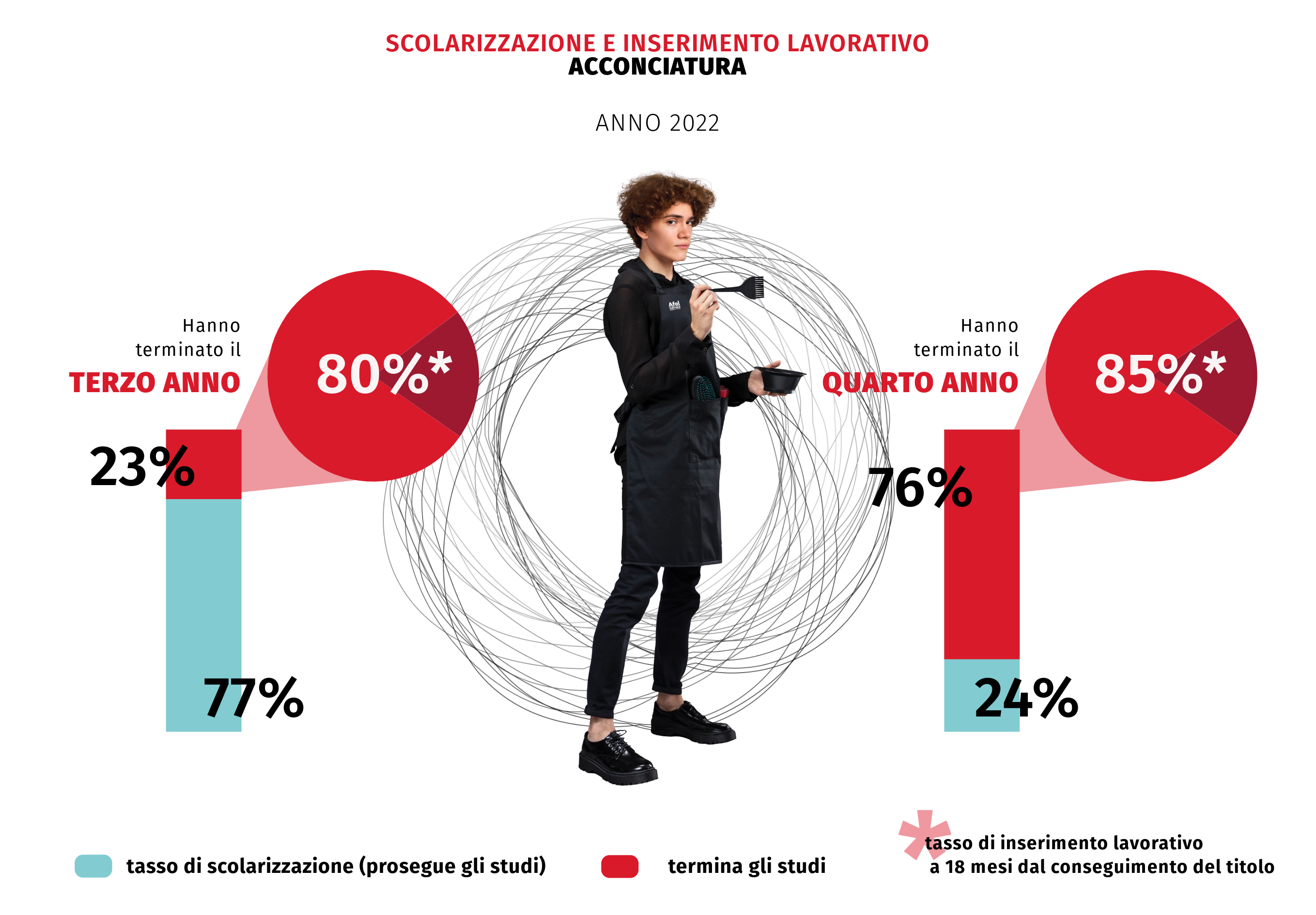 Il corso triennale di formazione professionale è rivolto agli studenti in uscita dalla terza media e offre una preparazione pratica e teorica nel settore della cura e dello styling dei capelli. Durante il percorso, gli studenti acquisiscono competenze tecniche, artistiche e relazionali, imparando a realizzare tagli, acconciature, trattamenti e colorazioni. Al termine del corso, si ottiene una qualifica professionale riconosciuta a livello nazionale ed europeo, utile per accedere al mondo del lavoro o proseguire con la specializzazione professionale.